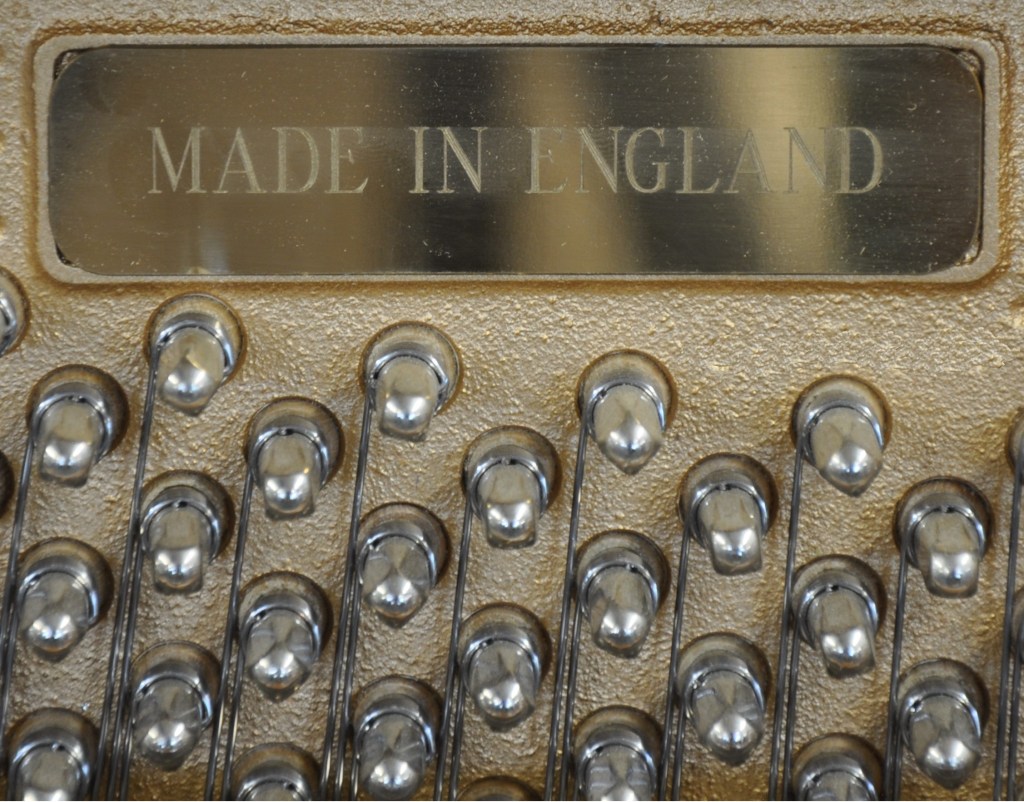 Sleek, modern contoured lines and a hand-finished ebony, high-gloss or solid wood finish on the exterior. On the interior a piece of English piano-making history.